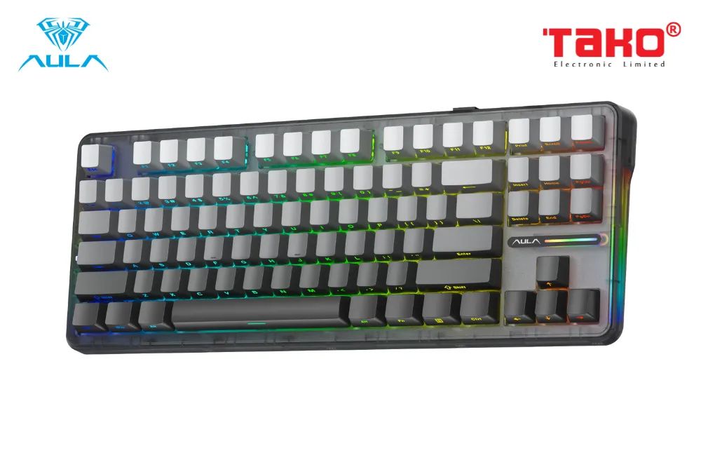 AULA F87/ F87 PRO BÀN PHÍM CƠ GAMING 3 MODE (Phiên bản Black gradient/ Grey wood V4 switch)